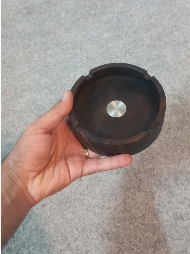 اندازهقطر۱۲ سانتیمتر ، ضخامت ۴ سانتیمتر ، کف محصول با فلز سکه پوشیده شده به دلیل طول عمر بیشتر محصول در هنگام استفاده و خاموش نمودن سیگار